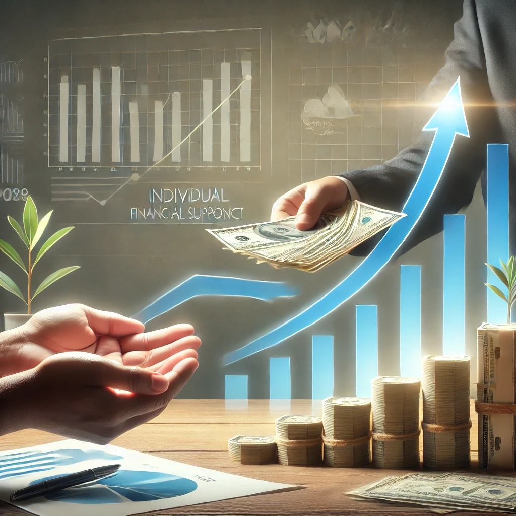 A visual representation of the increased individual support amounts, showing a person receiving financial assistance